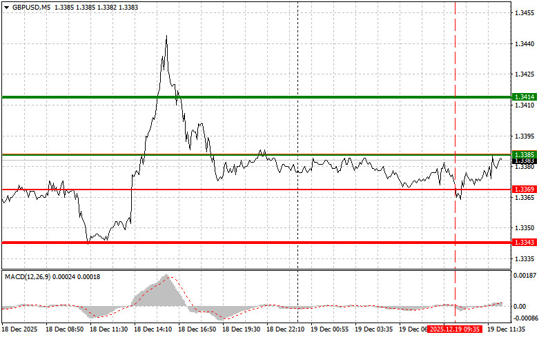 Der Test des Preisniveaus von 1,3369 erfolgte, als der MACD-Indikator gerade begann, sich von der Nulllinie nach unten zu bewegen. Dies bestätigte einen korrekten Einstiegspunkt für den Verkauf des Pfunds. Allerdings verzeichnete das Währungspaar keinen größeren Rückgang.