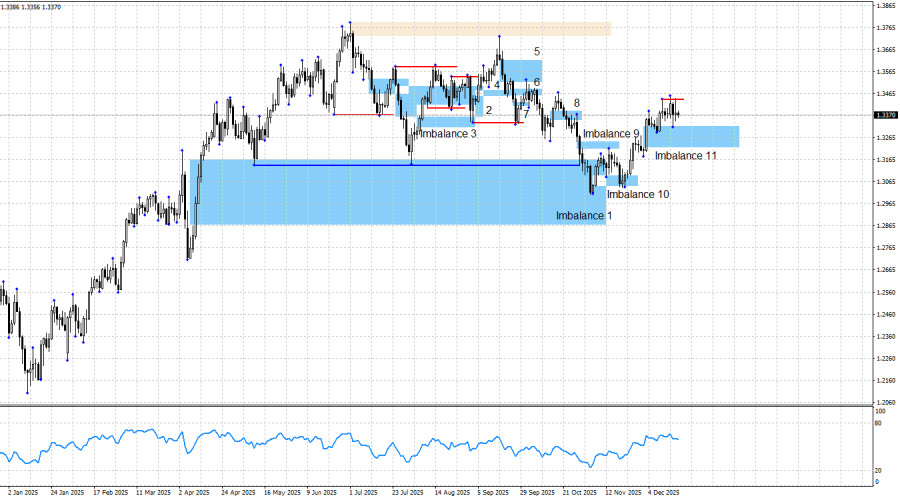 Eine Fortsetzung des "bullischen" Trends hätte bereits ab der Ungleichgewichtszone 1 erwartet werden können. Zu diesem Zeitpunkt hat das Pfund bereits auf Ungleichgewicht 1, 10 und 11 reagiert. Als Ziel für potenzielles Wachstum betrachte ich das Niveau von 1,3725. Wenn "bärische" Muster sich bilden, muss die Handelsstrategie möglicherweise angepasst werden, aber kurzfristig könnte nur ein neues "bullisches" Signal erscheinen – nämlich die Aufnahme von Liquidität und eine zweite Ausführung des "bullischen" Ungleichgewichts 11.