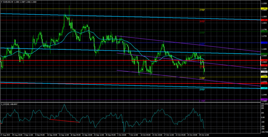 В общем, доллар продолжает довольно слабый рост, что отлично видно на дневном ТФ. На 4-часовом графике и ниже может показаться, что мы находимся внутри сильного тренда, но дневной ТФ расставляет все по полочкам. Во-первых, восходящий тренд 2025 года не отменен. Во-вторых, текущий виток нисходящей коррекции даже слабее предыдущего(а первый равнялся всего лишь 23,6% по Фибоначчи). В-третьих, сохраняется флэт с предполагаемой нижней линией около уровня 1,1400. Таким образом, до уровня 1,1400 европейская валюта может падать вполне свободно, и это все равно будет флэт и нисходящая коррекция в рамках глобального восходящего тренда.