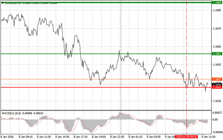 Тест цены 1.1642 пришелся на момент, когда индикатор MACD много прошел вниз от нулевой отметки, что ограничивало дальнейший нисходящий потенциал пары. По этой причине я не продавал евро.