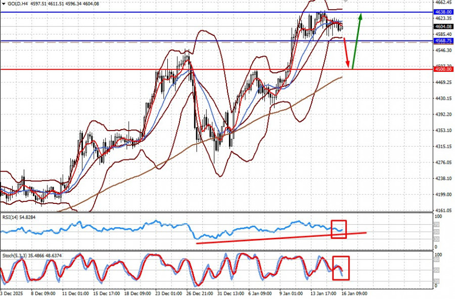 Цена на золото консолидируется в очень узком диапазоне. Ее прорыв вниз может привести к ограниченному снижению к 4500.00 с последующим разворотом вверх и повышение к 4638.00. Уровнем для его покупки может служить отметка 4565.00.