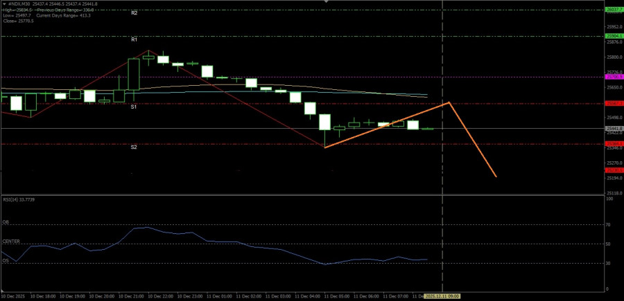 Vùng Áp Lực: Nếu giá của #NDX phá vỡ và đóng cửa dưới mức 25700.9, có khả năng nó sẽ tiếp tục giảm xuống 25567.1.