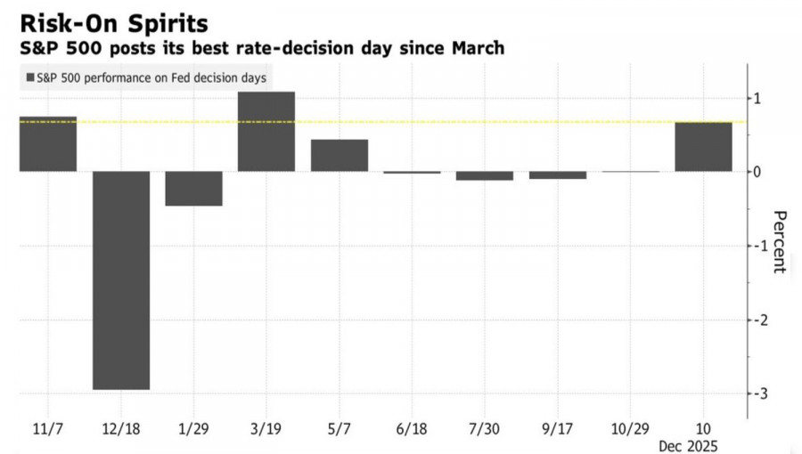 Thị trường đã nhận được điều mình mong muốn. Fed đã thực hiện một đợt cắt giảm mạnh mẽ, hạ tỷ lệ quỹ liên bang xuống 3,75% và báo hiệu tạm dừng chu kỳ nới lỏng tiền tệ. Tuy nhiên, ngân hàng trung ương không đóng cửa cho khả năng nới lỏng hơn nữa. Hơn nữa, nhấn mạnh của Jerome Powell về sự yếu kém của thị trường lao động và việc phụ thuộc vào dữ liệu của quá trình ra quyết định của Fed khiến việc mở rộng tiền tệ trong năm 2026 là khá có khả năng. Điều này đã được thị trường chứng khoán Mỹ đón nhận tích cực, với chỉ số S&P 500 ghi nhận phản ứng mạnh mẽ nhất đối với một cuộc họp FOMC kể từ tháng Ba, trong khi Russell 2000 đạt một mức cao kỷ lục mới.
