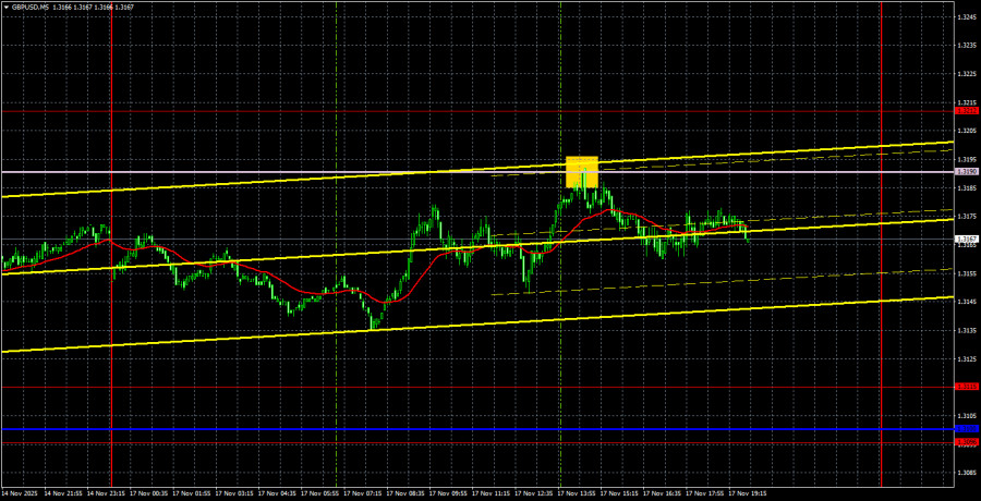 За 18 ноември открояваме следните важни нива: 1.2863, 1.2981-1.2987, 1.3050, 1.3096-1.3115, 1.3212, 1.3307, 1.3369-1.3377, 1.3420, 1.3533-1.3548, 1.3584. Линията Senkou Span B (1.3190) и линията Kijun-sen (1.3100) също могат да бъдат източници на сигнали. Препоръчва се поставянето на Stop Loss на нулата след като цената се придвижи в правилната посока с 20 пипса. Линиите на индикатора Ichimoku могат да се изместят през деня, което трябва да се вземе предвид при определяне на търговските сигнали.
