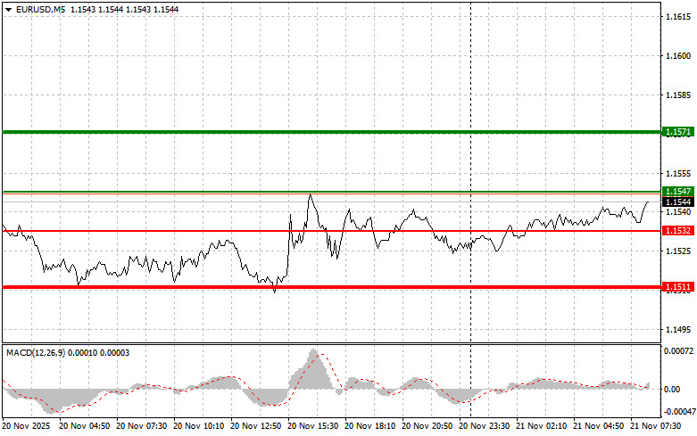 Тестът на цената при 1.1521 съвпадна с началото на движението на MACD индикатора надолу от нулевата точка, потвърждавайки правилната входна точка за продажба на евро. В резултат на това двойката падна само с 10 пипса.