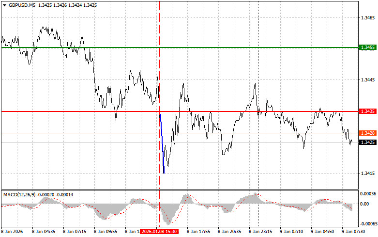 Сценарий 2: Също така планирам да купя паунди днес, ако цената тества два пъти поред 1.3422 и MACD индикаторът е в зоната на препродажба. Това ще ограничи потенциала за понижение на двойката и ще предизвика обръщане на пазара нагоре. Очаква се ръст към нивата 1.3438 и 1.3475.