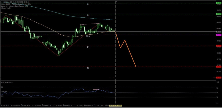 壓力區:如果價格跌破並收於98.34以下,#USDX可能會繼續下行至98.17。