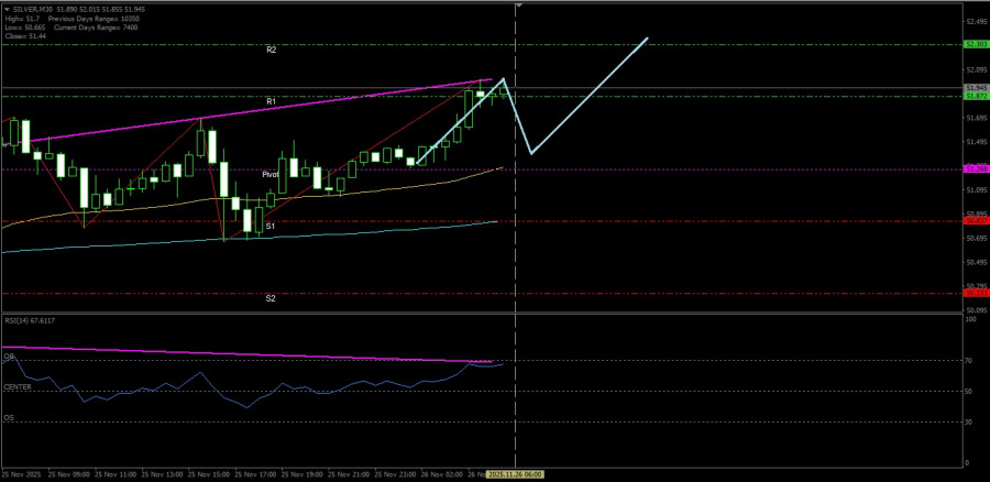 動量延伸傾向:如果突破51.872,白銀有潛力測試52.303水平。