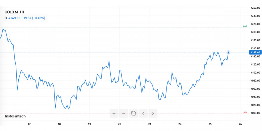 這一邏輯在報價中得到了證實:早些時候,黃金上漲超過2%,創下自11月14日以來的新高。隨後出現小幅回調,但市場興趣依然高漲,從期貨市場保持在正領域這一點上可見一斑。