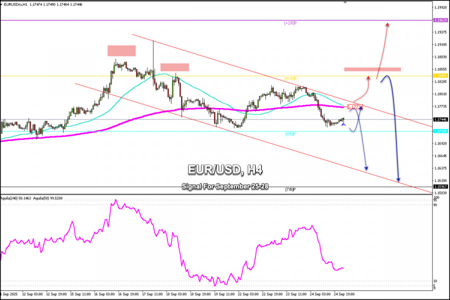 Indikátor eagle dává negativní signál, a proto předpokládáme, že euro může pokračovat v poklesu k supportu na 7/8 Murray (přibližně na úrovni 1,1596).