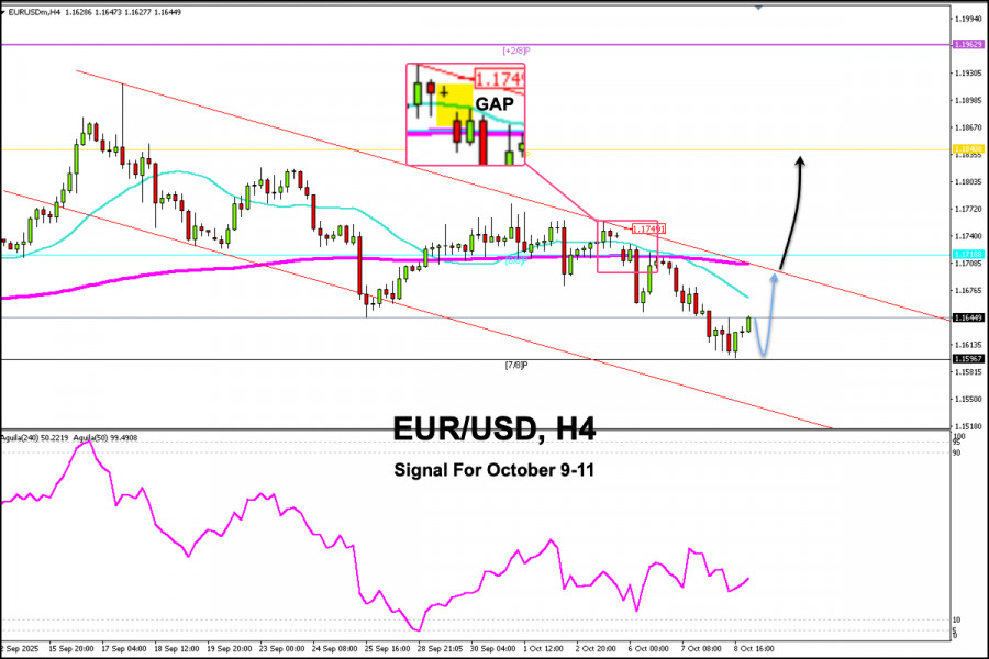 Indikátor Eagle vykazuje pozitivní signál, takže jakýkoli pokles EUR/USD bude v nadcházejících dnech vnímán jako signál k nákupu s cíli na 1,1718 a 1,1745.