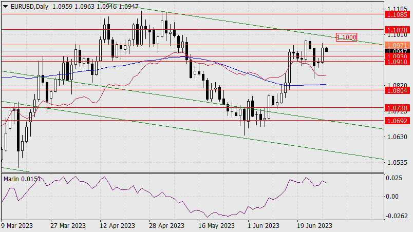 Mardi, lors d'une conférence au Portugal, la présidente de la BCE, Christine Lagarde, a déclaré que les taux d'intérêt records n'avaient pas été atteints, ce qui a brièvement stimulé la hausse de l'euro. Les banques chinoises ont vendu des dollars hier, ce qui a indirectement soutenu l'euro. La paire de devises a augmenté de 54 points, atteignant un niveau intermédiaire de 1,0971 sur la voie de 1,1000.