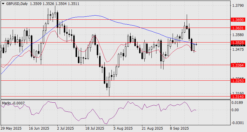 Sur le graphique en quatre heures, la situation est moins optimiste. Marlin n'est pas encore entré en territoire positif, et au-dessus du niveau de 1,3525 se trouve la ligne Kijun-sen (1,3562), donc une consolidation au-dessus de 1,3525 à elle seule ne garantit pas encore une progression vers 1,3631.
