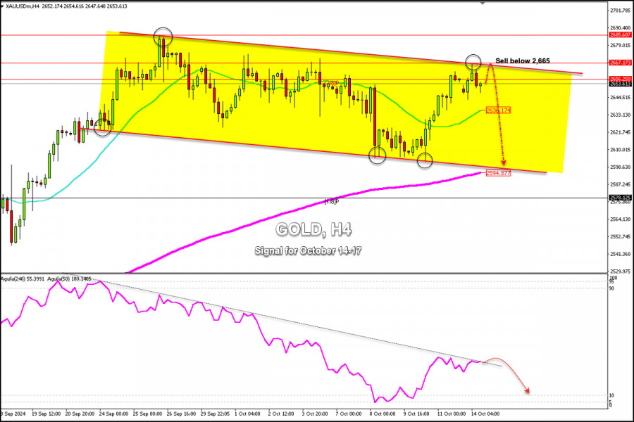 Penunjuk Eagle berada di bawah garisan tekanan penurunan. Ini menunjukkan bahawa kekuatan kenaikan emas semakin berkurangan. Jadi, selagi harga emas mengukuh di bawah 2,665, kita boleh melihatnya sebagai peluang untuk menjual setiap kali ia menghampiri zon rintangan ini.