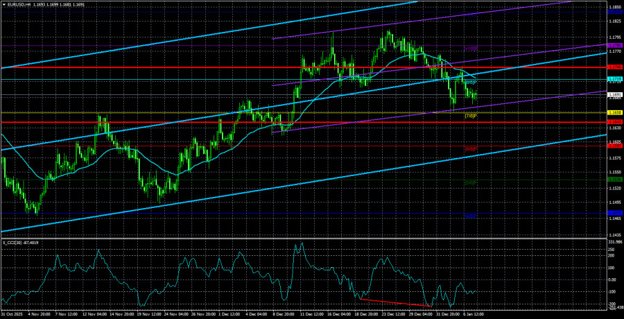 ہاں، یورو/امریکی ڈالر کا جوڑا اب بھی 1.1400 اور 1.1830 کی سطحوں کے درمیان ٹریڈ کر رہا ہے۔ یہ مسلسل چھ ماہ سے ایسا کر رہا ہے۔ اس رینج میں کتنا عرصہ باقی رہے گا یہ کہنا مشکل ہے۔ وینزویلا میں ٹرمپ کے فوجی آپریشن کے ساتھ سال کا آغاز کافی ہنگامہ خیز تھا۔ تاہم، جیسا کہ اگلے چند دنوں سے ظاہر ہوا، مارکیٹ نے منشیات کی اسمگلنگ سے لڑنے کی آڑ میں وینزویلا کے آئل فیلڈز پر قبضہ کرنے کی ٹرمپ کی کوششوں کو سراہا۔ مارکیٹ کو یہ بھی یقین نہیں ہے کہ ٹرمپ کیوبا، کولمبیا یا گرین لینڈ کے جزیرے پر بھی ایسی ہی کارروائیاں کریں گے، جس کا تعلق یورپی یونین کے رکن ڈنمارک سے ہے۔