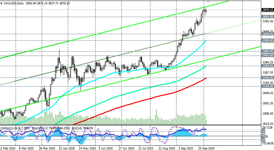 Scenariusz alternatywny: Sell Stop: 3850,00, 3835,00. Stop-Loss 3880,00. Cele na poziomach: 3805,00, 3800,00, 3795,00, 3700,00, 3645,00, 3607,00, 3600,00, 3585,00.