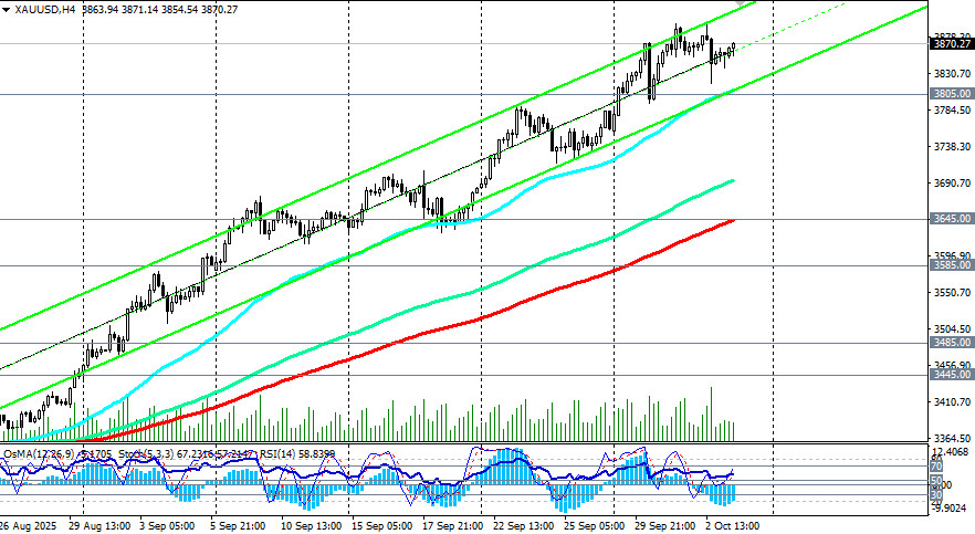Przełamanie tego poziomu może wywołać dalszą korektę w kierunku strefy wsparcia w obszarze poziomów 3645,00 (200 EMA na wykresie 4-godzinnym), 3600,00, 3585,00 (50 EMA na wykresie dziennym), w pobliżu których, biorąc pod uwagę byczy trend pary, można ustawić nowe zlecenia oczekujące na kupno, licząc na odbicie i wznowienie wzrostu.