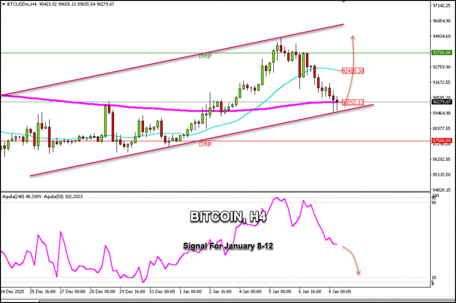 O Bitcoin está sendo negociado próximo de US$ 90.252, recuperando-se após tocar o fundo do canal de tendência de alta formado desde 24 de dezembro. De acordo com o gráfico de 4 horas (H4), observa-se uma forte correção técnica após o ativo ter atingido a máxima de US$ 95.000.