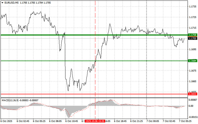 The price test at 1.1684 occurred at a time when the MACD indicator had moved significantly above the zero line, limiting the pair's upside potential—especially after the strong downturn seen earlier. For this reason, I did not buy the euro.