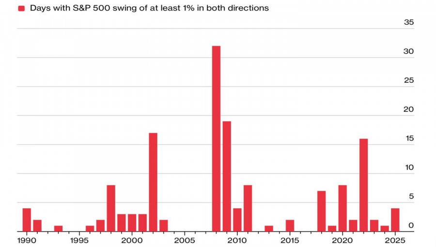 Динамика дневных изменений S&P 500 на 1% и более