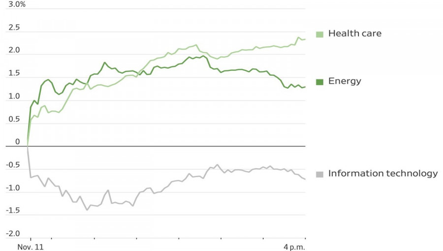 Tin đồn về sự kết thúc của việc đóng cửa đã tạo ra những ấn tượng trái chiều trên thị trường chứng khoán. Vào đầu tuần, các cổ phiếu công nghệ đang gặp khó khăn đã hồi phục trước ngày 14 tháng 11. Tuy nhiên, ngày hôm sau, chúng lại giảm trong khi cổ phiếu y tế và năng lượng tăng mạnh. Các nhà đầu tư đang đa dạng hóa danh mục đầu tư của họ. Họ vẫn nghi ngờ liệu những khoản đầu tư khổng lồ vào trí tuệ nhân tạo có mang lại kết quả hay không.