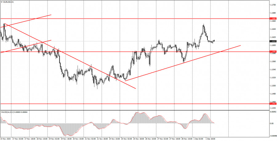 Rất ít sự kiện quan trọng được lên kế hoạch cho thứ ba này. Qua đêm, đã có một bài phát biểu dự kiến từ Chủ tịch Cục Dự trữ Liên bang Jerome Powell, nhưng cho đến hiện tại, không có thông tin nào về bài phát biểu đó, và sự biến động của thị trường cho thấy Powell có khả năng đã không đưa ra thông tin gì đáng kể. Nhớ rằng, cuộc họp của Fed đã được lên lịch vào ngày 10 tháng 12, và hiện tại, không có thông tin quan trọng nào liên quan đến lạm phát, thị trường lao động hoặc thất nghiệp. Không chắc chắn liệu có thông tin nào quan trọng sẽ tới trước ngày 10 tháng 12 hay không. Ngoài ra, một bài phát biểu từ thành viên FOMC Michelle Bowman, người gần đây đã ủng hộ chính sách tiền tệ hỗ trợ, là điều được mong đợi.